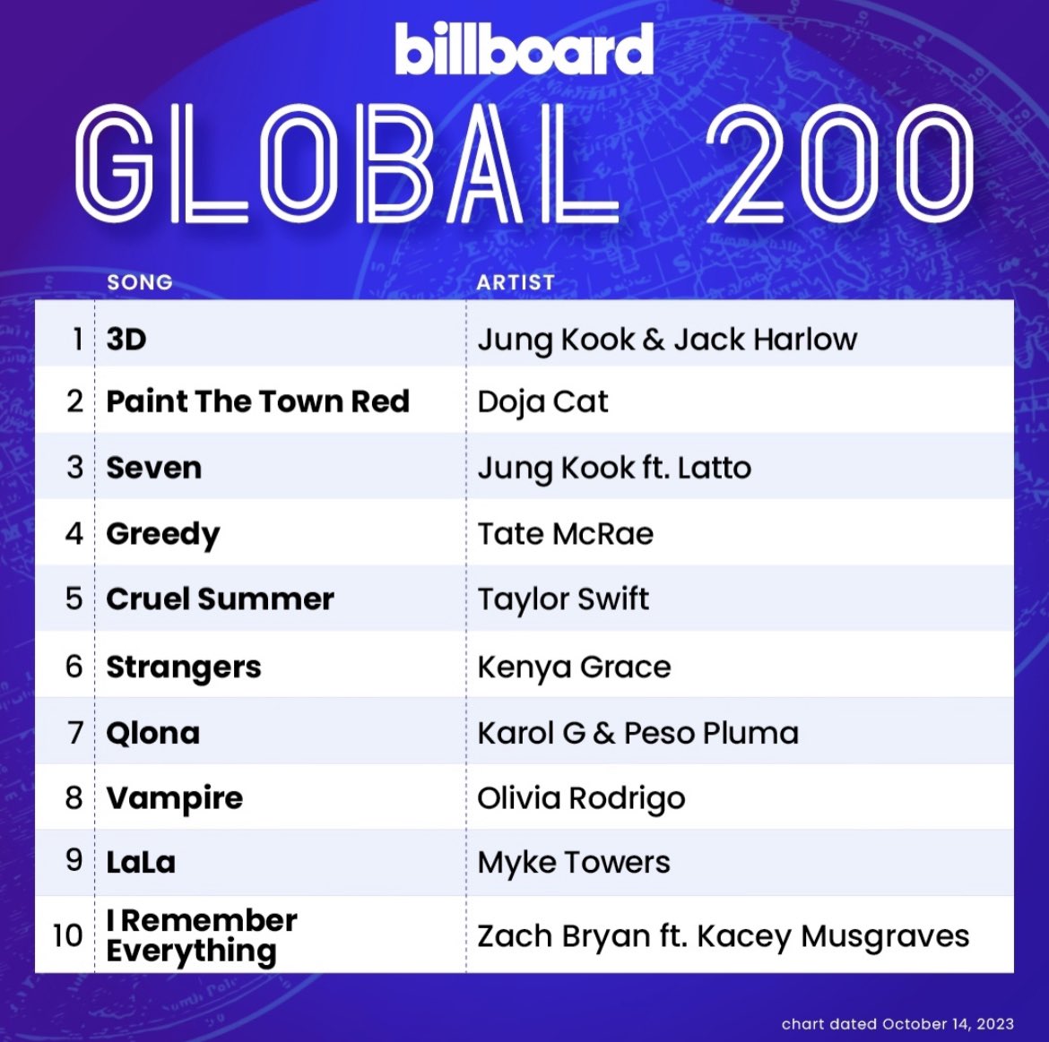 정국이의 3D 최초 성적이 공개됐다. 9월 29일 공개한 3D는 정국의 두 번째 싱글이자 팝의 본고장에 내민 두 번째 도전장이다. 첫 번째 싱글 seven이 아직 차트 안에서 굳건한 가운데 나온 두 번째 싱글이라 기대반 걱정반이었으나 결과는 역시였다. 핫 100 5위, 글로벌은 당연 1위이다.